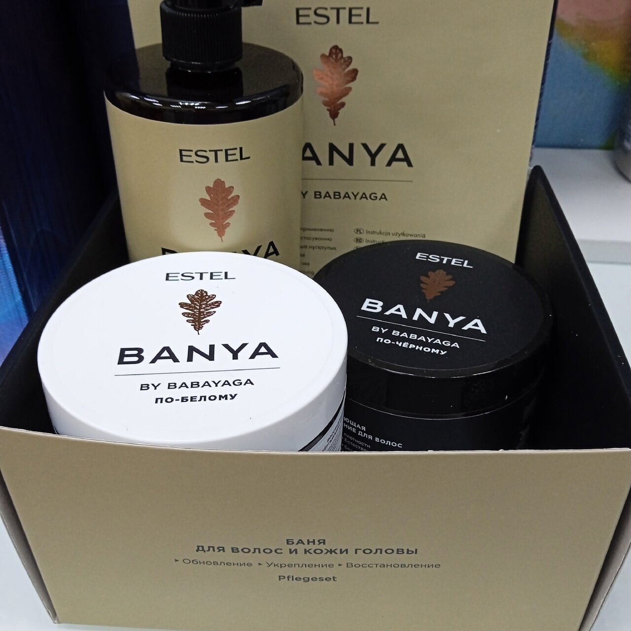 Набор для процедуры BANYA включает в себя: 1. Мицеллярный шампунь для волос и кожи головы BANYA, 660 мл, 2. Восстанавливающая маска-обертывание BANYA, 500 мл. 3. Укрепляющая маска-обертывание BANYA, 500 мл. BANYA — процедура для волос на основе натуральных растительных компонентов.В формуле BANYA соединились травы и ягоды. В процедуре всего два шага: первый — очищение берёзовым соком с помощью Мицеллярного шампуня, второй — обёртывание и насыщение питательными элементами с помощью Восстанавливающей маски в БАНЕ ПО-БЕЛОМУ или Укрепляющей маски в БАНЕ ПО-ЧЁРНОМУ. Какую бы баню вы ни выбрали, всё будет быстро, приятно, эффективно и просто магично.